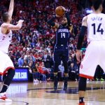 ラプターズとのシリーズ初戦で決勝弾を沈めた⑭オーガスティン[写真]=Getty Images