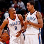 サンダー在籍時、セフォローシャ(右)は主にウェストブルック(左)と先発バックコートの一角としてプレーしていた[写真]=Getty Images