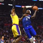 第2クォーターにはレナードとレブロンが交互に3ポイントをねじ込むなど開幕戦から豪華極まりないスーパースターたちの競演で会場は大いに盛り上がる。そこで主導権を握ったのはクリッパーズだった。