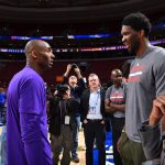 コービー(左)と試合で対戦することはなかったものの、大きな影響を受けたと明かしたエンビード(右)[写真]=Getty Images