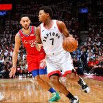 昨年のプレーオフでも激突したラプターズのラウリー(右)とシクサーズのシモンズ(左)[写真]=Getty Images