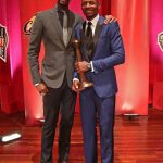 2018年に殿堂入りしたアレン(右)から励まされたボッシュ(左)[写真]=Getty Images