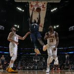 さらにロンゾ・ボールが6リバウンド12アシスト4スティール2ブロック、デリック・フェイバーズが15リバウンド2ブロックと続き、ベンチスタートのニコロ・メッリが10得点6リバウンド、イートワン・モアが10得点をマークし、116-104で勝利。