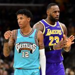 レブロン(右)がモラント(左)ら若手のパフォーマンスに感心していた[写真]=Getty Images