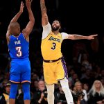 サンダーのポールとマッチアップするデイビス[写真]=Getty Images
