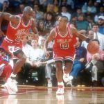アームストロング(右)は正確なシュート力と堅実なディフェンスで、ジョーダン(左)らと共にブルズで前期3連覇を達成[写真]=Getty Images