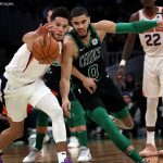 サンズが狙っていたのはブッカー(左)とテイタム(右)によるデュオ結成だった[写真]=Getty Images