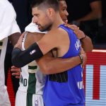 シリーズ終了後、アデトクンボ(左)とブーチェビッチ(右)が健闘を称え合った[写真]=Getty Images