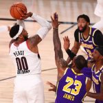 だがレイカーズはアンソニー・デイビスがゲームハイの43得点に9リバウンド4アシスト、レブロン・ジェームズがトリプルダブル(36得点10リバウンド10アシスト)と超強力タッグが大暴れ。さらにケンテイビアス・コールドウェル・ポープが14得点5アシスト3スティール、ドワイト・ハワードが11得点6リバウンドと続き、最終スコア131-122でブレイザーズを下し、4勝1敗でカンファレンス・セミファイナル進出。