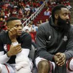 いくらレイカーズといえど、リーグ屈指の爆発力を誇るハーデン(右)とウェストブルック(左)によるデュオは要警戒[写真]=Getty Images