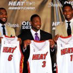 2010年夏、ヒートで“スリーキングス”が誕生した(左からレブロン、ウェイド、ボッシュ)[写真]=Getty Images