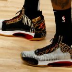 “Zoo”または“Welcome to the Zoo”と呼ばれるこちらのモデルは、テイタムが子供の頃に訪れたセントルイス動物公園の記憶から着想を得ている。ナイキではお馴染みのアニマルパターンをまとい、シュータンにはテイタムのJTロゴをセット。また、シュータンの裏側には息子、デュースの名前が刺しゅうされている。