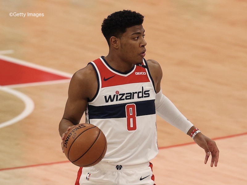 WASHINGTON, DC - MARCH 02: Rui Hachimura #8 of the Washington Wizards dribbles the ball against the Memphis Grizzlies during the first half at Capital One Arena on March 2, 2021 in Washington, DC. NOTE TO USER: User expressly acknowledges and agrees that, by downloading and or using this photograph, User is consenting to the terms and conditions of the Getty Images License Agreement. (Photo by Patrick Smith/Getty Images)