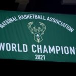 バックスのロゴが刻まれたチャンピオンバナー[写真]=Getty Images