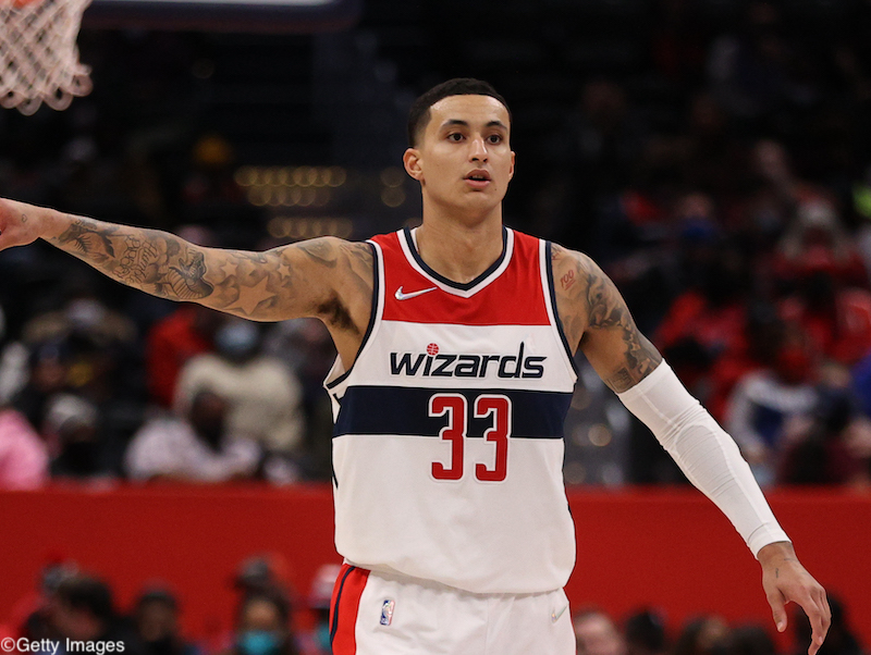 WASHINGTON, DC - JANUARY 11: Kyle Kuzma #33 of the Washington Wizards in action against the Oklahoma City Thunder during the second half at Capital One Arena on January 11, 2022 in Washington, DC. NOTE TO USER: User expressly acknowledges and agrees that, by downloading and or using this photograph, User is consenting to the terms and conditions of the Getty Images License Agreement. (Photo by Patrick Smith/Getty Images)