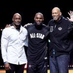 先日、レブロンはレギュラーシーズン通算得点でジャバー(通算3万8387得点)を抜き、歴代トップへ浮上。オールスターブレイクの時点で3万8411得点まで伸ばしている。そしてこの日は会場にレブロン、ジャバー、ユタ・ジャズのレジェンドで歴代3位の3万6928得点を誇るカール・マローンがそろい、通算得点歴代トップ3が集結。