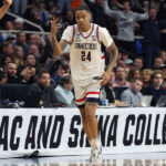 アウトサイドの脅威こそないものの、ジャクソンはイージーバスケットやチームメートにオープンショットを生み出し、ディフェンスでもリーダーシップを発揮してコネチカット大の勝利に貢献してきた。1巡目指名が確実かと問われると言葉を濁さざるをえないが、コネチカット大の躍進により、モックドラフトでの想定順位が上がることは間違いない。