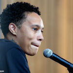昨年2月にロシアで違法薬物所持と密輸の疑いで逮捕され、禁錮9年の実刑判決を受けたブリトニー・グライナー。昨年末に囚人交換で釈放された同選手が、4月28日(現地時間27日)の記者会見に出席した。