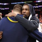 シリーズ終了後、健闘を称え合ったヨキッチ(左)とデュラント(右)[写真]=Getty Images