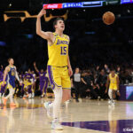116-94と20点をリードした試合終了残り3分50秒の時点で、主力を下げて勝負あり。レイカーズが122-101で勝利を収め、デンバー・ナゲッツとのウェスタン・カンファレンス・ファイナルに駒を進めた。