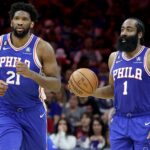 昨シーズンのMVPエンビード(左)とシクサーズ退団が噂されるハーデン(右)[写真]=Getty Images