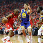 ロケッツ在籍時のポールとマッチアップするトンプソン [写真]=Getty Images