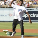 7月にドジャースの始球式へ登場した八村[写真]=Getty Images