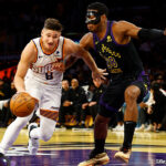レイカーズのホーム、クリプトドットコム・アリーナで行われた準々決勝で、鼻を守るためのマスクをつけてコートに立った八村は、第1クォーター終盤にデイビスとともにデビン・ブッカーにダブルチームをかけてターンオーバーを誘うなど、守備でチームに求められたことを遂行し、攻撃では第2クォーター序盤にジェームズからのパスを受けて3ポイントを決め、レイカーズのリードを13点にした。このシュート後、サンズが即タイムアウトを取るなど、インパクトを与えた一発だった。八村にとっては13日ぶりの試合。鼻骨骨折の手術後、ほとんど練習が出来ていない中での出場ながら、約21分半プレーし、7得点、2リバウンド。レイカーズは接戦を制し、ラスベガスへの切符を手に入れた。