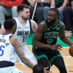 セルティックス2枚看板の1人、ジェイレン・ブラウンは第2戦でも存在感を放った。出場時間42分25秒は盟友ジェイソン・テイタムに次ぐチーム2位の長さで、21得点4リバウンド7アシスト3スティールを記録。終盤にはデリック・ホワイトと勝利を決定づけるダブルブロックを披露し、敵地での試合に弾みをつけた。