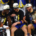 2022年のNBA制覇を喜ぶグリーン、トンプソン、カリーの3人 [写真]=Getty Images