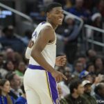 クリプトドットコム・アリーナのコートサイド最前列ベンチに座っていた佐々木のもとに、レイカーズのレブロン・ジェームズが歩み寄って握手。“キング”の登場に佐々木はすぐさま立ち上がって言葉を交わすと、アップの様子を間近で見守った。