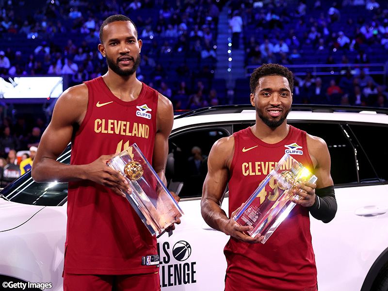 決勝に進出したのがドノバン・ミッチェルとエバン・モーブリーがコンビを組んだチーム・キャブスと、ドレイモンド・グリーンとモーゼス・ムーディーの地元チーム・ウォリアーズ。先攻のチーム・キャブスが1分0.3秒でクリアすると、チーム・ウォリアーズはパスゾーンで苦戦。ムーディーがパスで1本、グリーンが3本もミスを犯してしまい、チーム・キャブスのタイムを上回ることができず。優勝はチーム・キャブスに決定した。