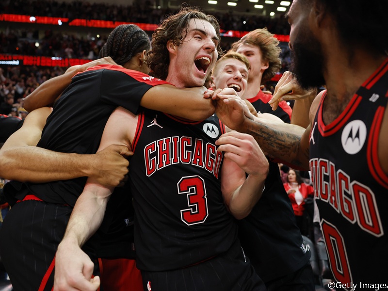 シカゴ・ブルズは、3月28日(現地時間27日、日付は以下同)のロサンゼルス・レイカーズ戦をジョシュ・ギディーのハーフコート手前から放ったブザービーターで119-117の劇的な勝利を飾り、今シーズン2度目の4連勝とした。