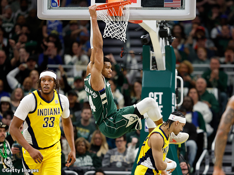 4月26日(現地時間25日)、ファイサーブ・フォーラムで「NBAプレーオフ2025」イースタン・カンファレンス1回戦が開催。第5シードのミルウォーキー・バックスが第4シードのインディアナ・ペイサーズと激突した。