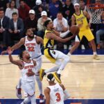 試合はニックスのジェイレン・ブランソンがゲームハイの43得点に5アシスト、カール・アンソニー・タウンズが35得点12リバウンドと両輪が躍動し、ペイサーズは第4クォーター残り3分半を切った時点で14点(102-116)を追う展開に。