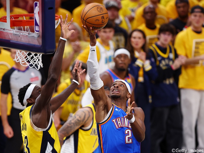 しかも、サンダーが誇るMVPは、試合時間残り5分で15得点を奪取。これは1971年以降にファイナルの大舞台で残した最多得点記録となった。アンドリュー・ネムハードを筆頭にペイサーズの厳しいマークで苦戦する場面もあったとはいえ、SGAが終盤の大事な場面で見事ギアを上げて勝利へ導いたと言っていい。