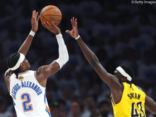 チェット・ホルムグレンやアイザイア・ハーテンシュタインらサンダーのビッグマン陣をガードしつつ、リムプロテクターも務めるターナーが、第7戦でシューティングスランプから抜け出すことができるかも注目したい。