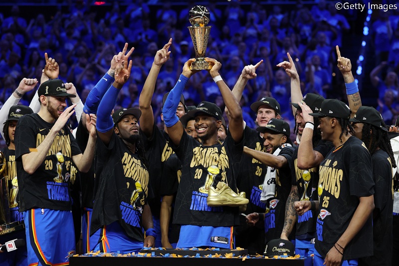 6月23日(現地時間22日、日付は以下同)。オクラホマシティ・サンダーがインディアナ・ペイサーズを103-91で下し、6日から始まった「NBAファイナル2025」を4勝3敗で制してリーグの頂点に立った。