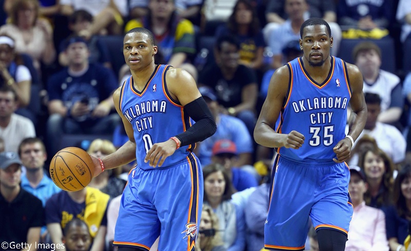 3位に入ったウェストブルック(左)とデュラント(右)[写真]=Getty Images