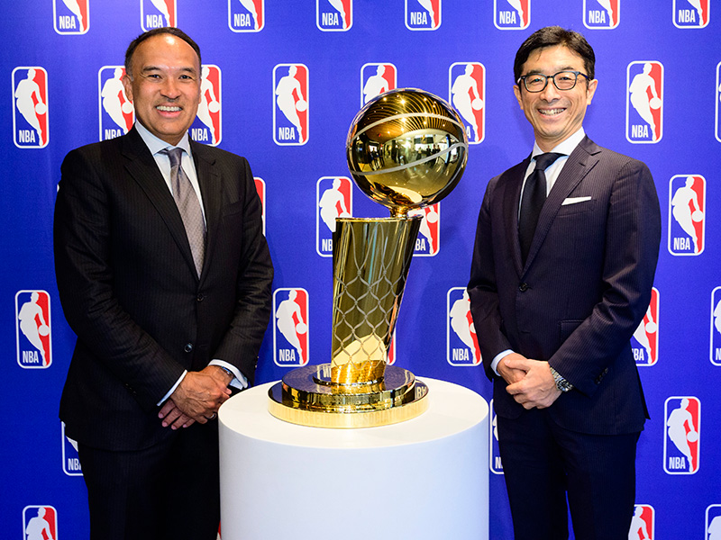(左から)マーク・テイタムNBA副コミッショナー兼最高執行責任者(COO)、齋藤武NTTドコモ代表取締役副社長