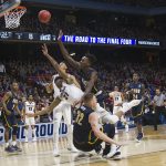 ゴンザガ大は残り1分49秒には62-64とついに逆転を許す。しかし、残り56秒にはジョッシュ・パーキンスがジャンプシュートを沈めて同点に。すると次の相手のポゼッションでシュートミスを八村が奪い、それをザック・ノーベルJr.の逆転3ポイントにつなげる。八村は残り16秒にダメ押しの追加点となるはずのフリースローを珍しく2本とも外したものの、ゴンザガ大は68-64で勝利した。