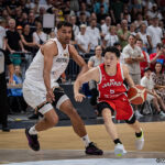 例えばドイツ代表のアイザック・ボンガ選手は身長203センチ、ウィングスパン213センチですが、ポイントガード登録としてガードへのマークも任され、スイッチしてはビッグマンも守れるとディフェンス面で大きく貢献しました。日本でもお馴染みのデニス・シュルーダー選手と同時出場の時間では彼より高い位置でボールマンにマークすることで、同時にシュルーダー選手のディフェンスでの負担を軽減させた効果もあったかもしれません。ちなみにドイツ代表の平均出場時間で30分を越えた選手はフランツ・ワグナー選手の32.0分、デニス・シュルーダー選手の31.4分の二人だけでした。