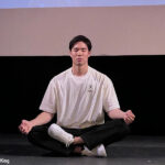 最近練習に取り入れている「瞑想」をステージで披露 [写真]=バスケットボールキング編集部