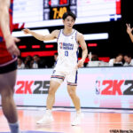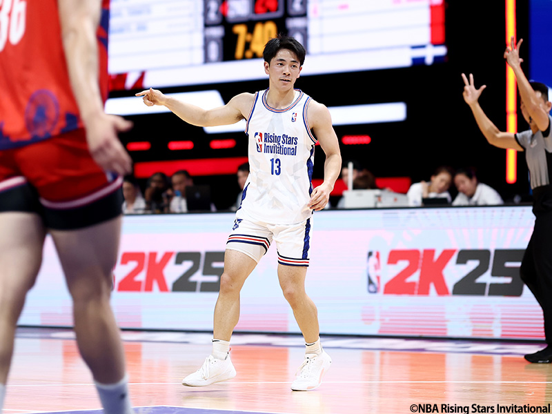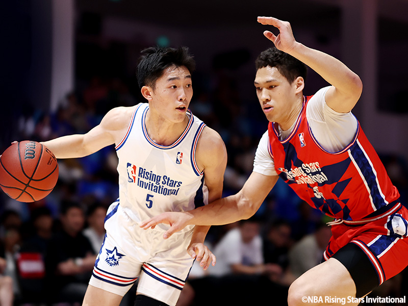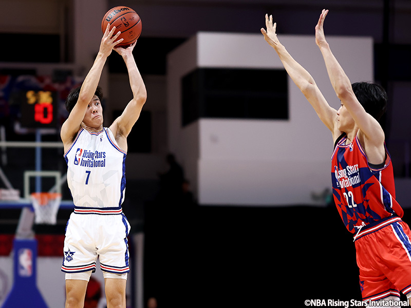 村上(左)は3ポイントシュートでもチームに貢献 [写真]=NBAライジングスターズ・インビテーショナル
